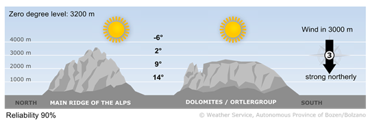 The sun will shine from morning till night from a largely cloudless sky. In the northern valleys, the foehn wind will continue to blow.